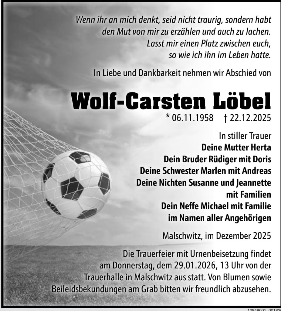 Mit großer Betroffenheit nehmen wir Abschied von Wolf‑Carsten Löbel, der am 22. Dezember 2025 verstorben ist.